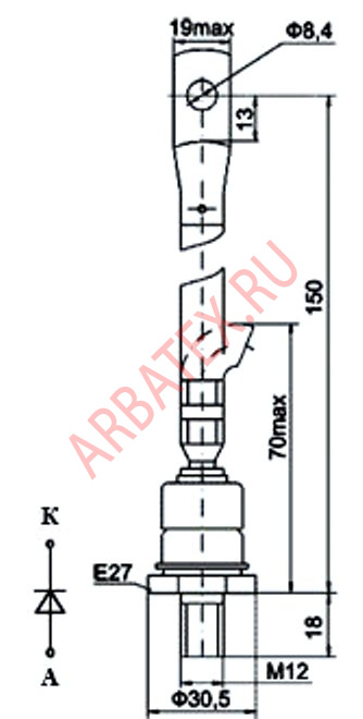 Масса диода не более 298 г.