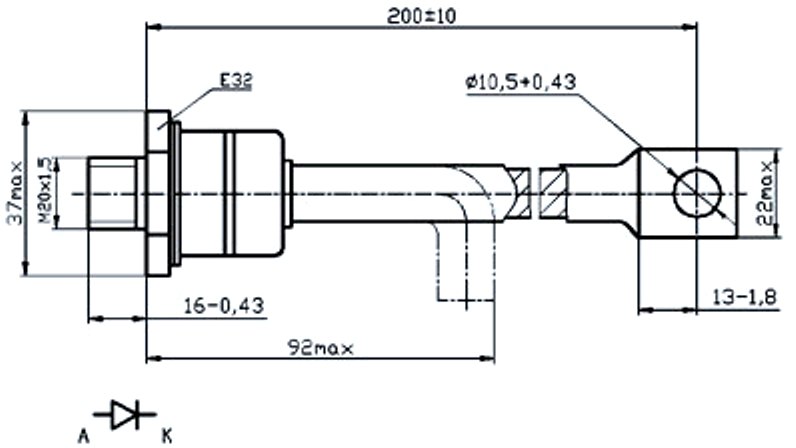 Средний прямой ток - 200 А