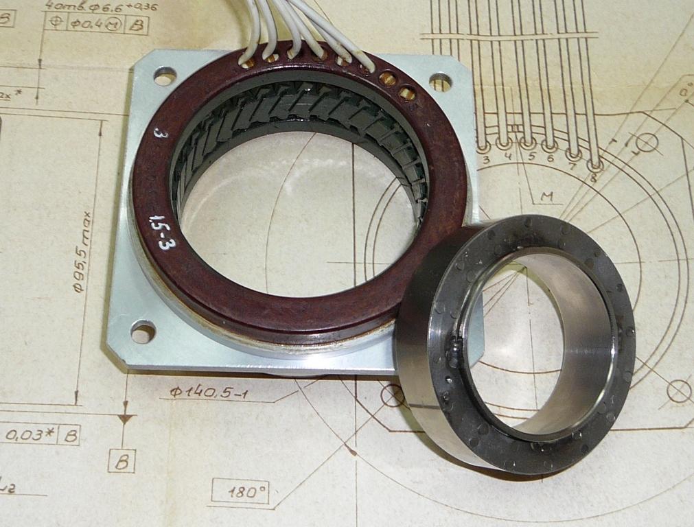 Электродвигатель ДБМ 185-16-0,3-2 бесконтактный моментный представляет собой бесконтактную, моментную, встраиваемого исполнения машину постоянного тока, изготавливаемую в виде двух сборочных единиц - ротора и статора.