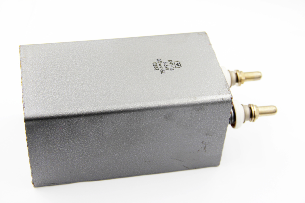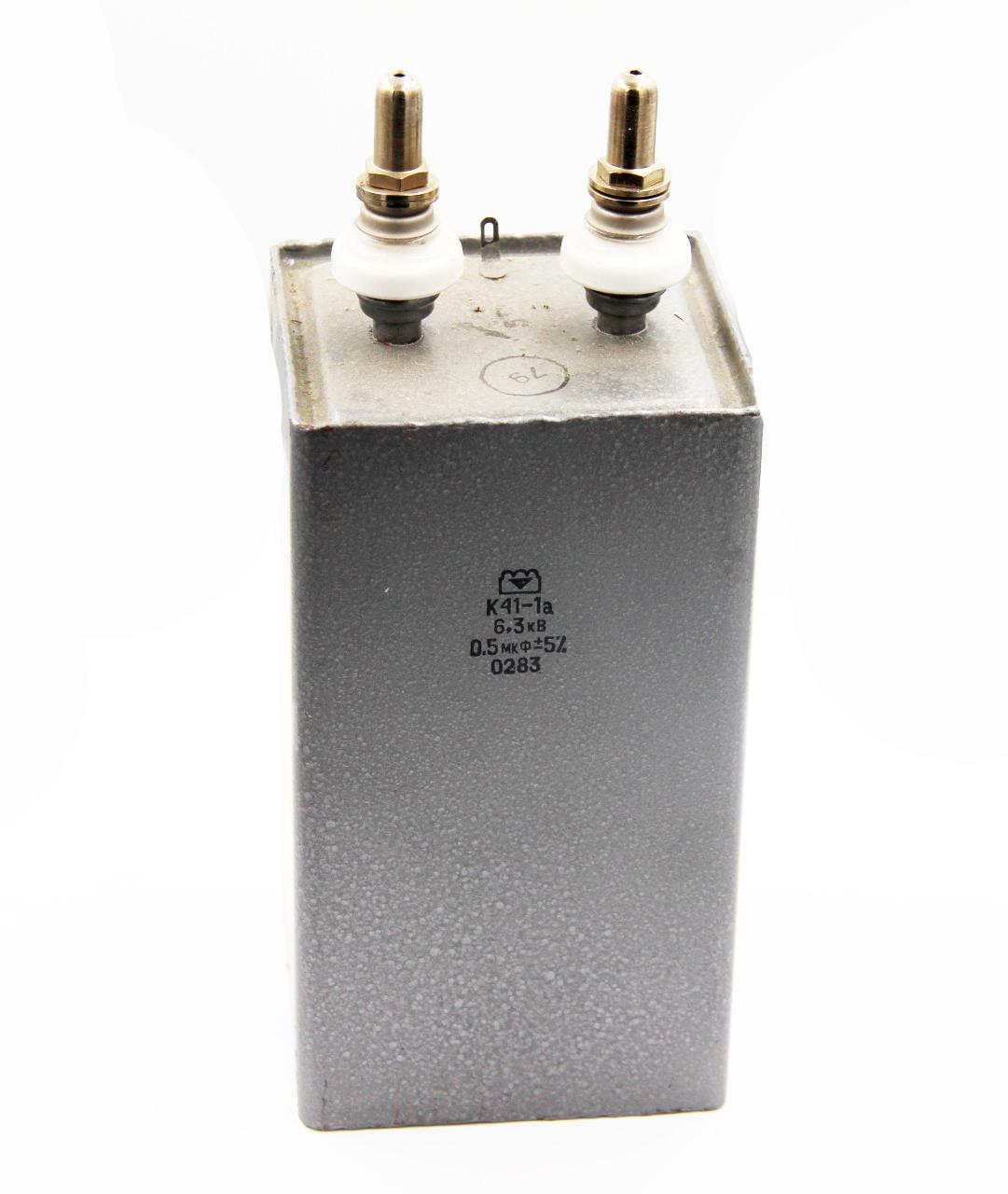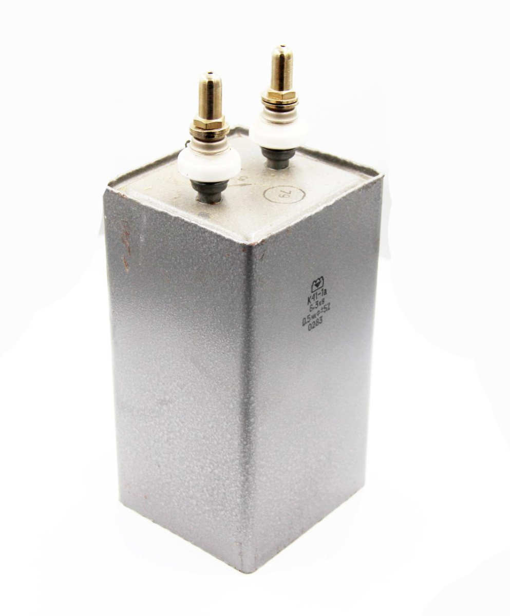 К41-1А 6,3кВ 0,5 мкф конденсатор высоковольтный, с бумажным диэлектриком с фольговыми обкладками. Предназначен для работы в цепях постоянного и пульсирующего токов, а также в цепях пульсирующего тока с частичным разрядом ёмкости.