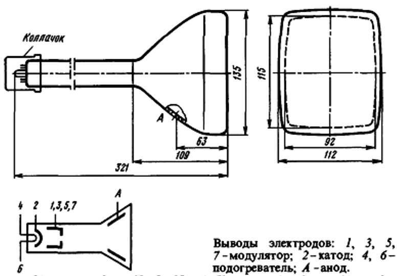 Трубка электронно-лучевая приемная индикаторная монохромная без запоминания.