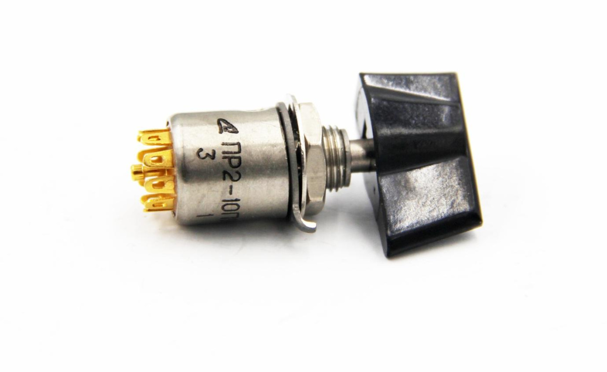 ПР2-10П1НВК переключатель малогабаритный поворотный применяется для коммутации электрических цепей постоянного и переменного токов, для объемного монтажа.