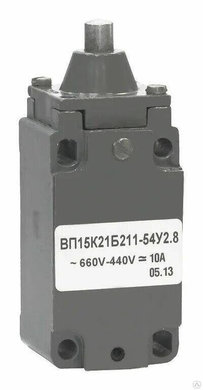 ВП15Д-21-Б211-54 У2-8 выключатель путевой концевой мгновенного действия применяется для коммутации  электрических цепей управления переменного  напряжения до 660В частоты 50 и 60Гц и  постоянного напряжения до 440В. Выключатель состоит из металлического или пластмассового корпуса, разделенного перегородкой на два отсека, в одном из которых расположен контактный блок, в другом - переключающий механизм мгновенного действия.