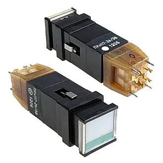 Переключатели ПКН117-2б/зВ кнопочные двухполюсные с двумя переключающими контактами со световой индикацией для объёмного монтажа.