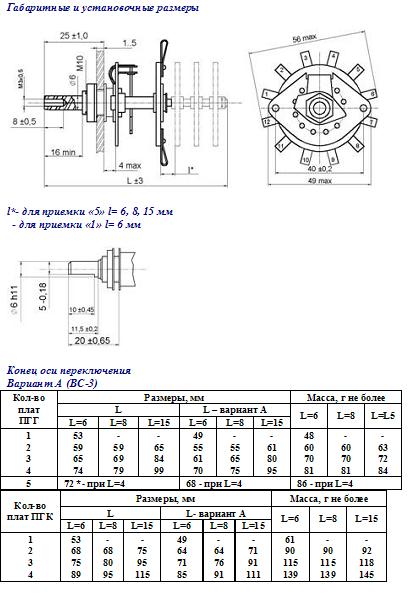 Описание переключателя галетного ПГК-4П2Н:
