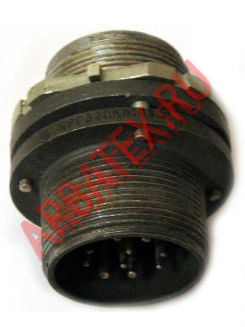 ШРГ20ПКП4ЭШ8 вилка блочная электрическая цилиндрическая ручного соединения низкочастотная герметичная, внутреннего объемного монтажа, применяется в радиоэлектронной и радиотехнической аппаратуре соединяют цепи с нагрузкой до 6 А на каждый и до 20 А на соединитель в целом при напряжении переменного и постоянного тока до 850 В. Разъемы ШР, ШРГ могут насчитывать от 1 до 47 контактов в зависимости от типоразмера, которые помещены в карболитовое основание и металлический или пластмассовый корпус.