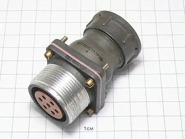 Цилиндрический низкочастотный соединитель 2РТТ28КПЭ7Г11В пылебрызгозащищенный, предназначен для работы в электрических цепях постоянного и переменного  токов частотой до 3 МГц при напряжении до 850 В (амплитудное значение).
