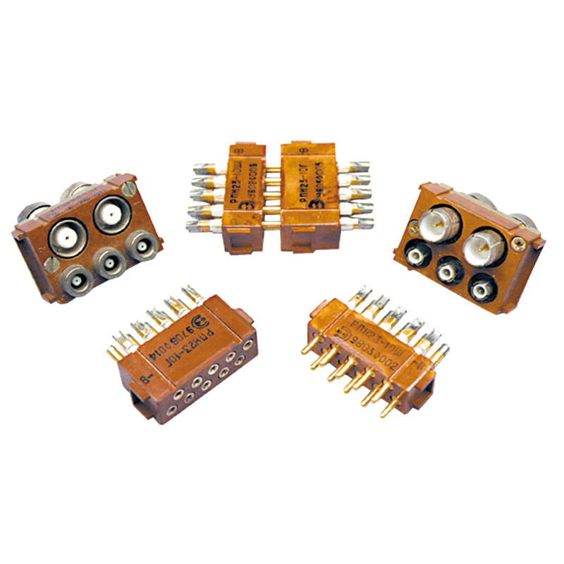Основной модуль на 10 низкочастотных контактов представляет в корпусе соединитель РПН23-10. Соединительный модуль на два радиочастотных контакта под кабель РК-75-3-22 и три радиочастотных контакта под кабель РК-75-1-22 представляет соединитель РПН23-5, а соединительный модуль на три радиочастотных контакта представляет соединитель РПН23-3.