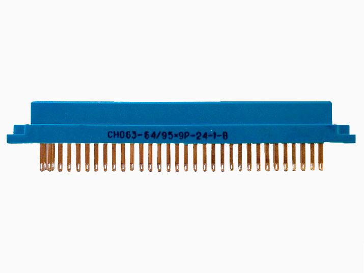 СНО - тип соединителя - соединитель врубного сочленения низкочастотный прямоугольный для объемного монтажа с метрическим шагом между контактами. 63 - порядковый номер разработки.  64 - количество контактов. 95×9 - условный размер соединителя. Тип контакта: - Р - гнездовой. Конструктивное исполнение хвостовиков контактов: - 24 - хвостовики розеток для объемного монтажа пайкой. Вид покрытия контактов: - 1 - золото.Тип хвостовика: - отсутствие цифры - под две накрутки.Всеклиматическое исполнение.
