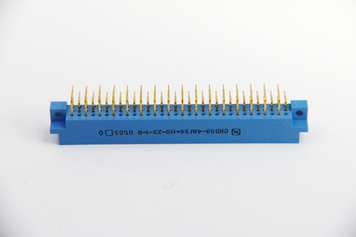 СНП59-48/94Х11В-23-1-В вилка ручного соединения низкочастотная прямоугольная с гиперболоидными контактами применяется в электрических цепях постоянного, переменного (частотой до 3 МГц) и импульсного токов, для внутреннего печатного монтажа.