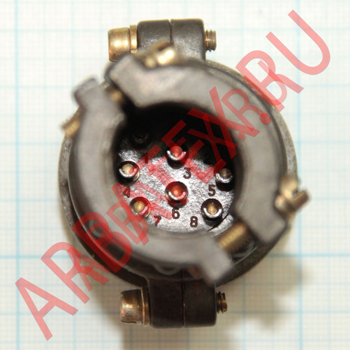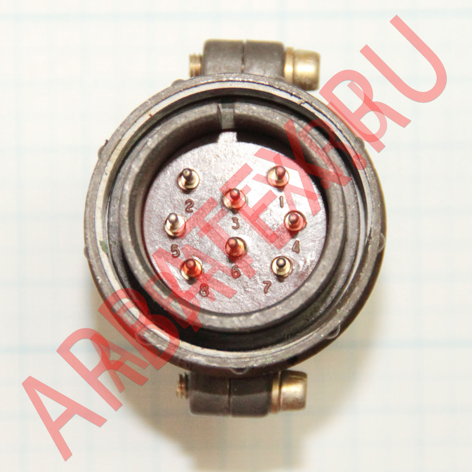 Соединитель ШР32П8НГ2 имеет один контакт, диаметром в 1мм который в свою очередь имеет серебрянное напыление.
