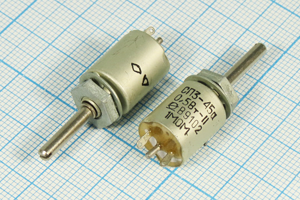 СП3-45А 0,5Вт 47 кОм резистор регулировочный одинарный однооборотный со стопорением вала, с круговым перемещением подвижной системы. Предназначен для работы в электрических цепях постоянного, переменного и импульсного тока.
