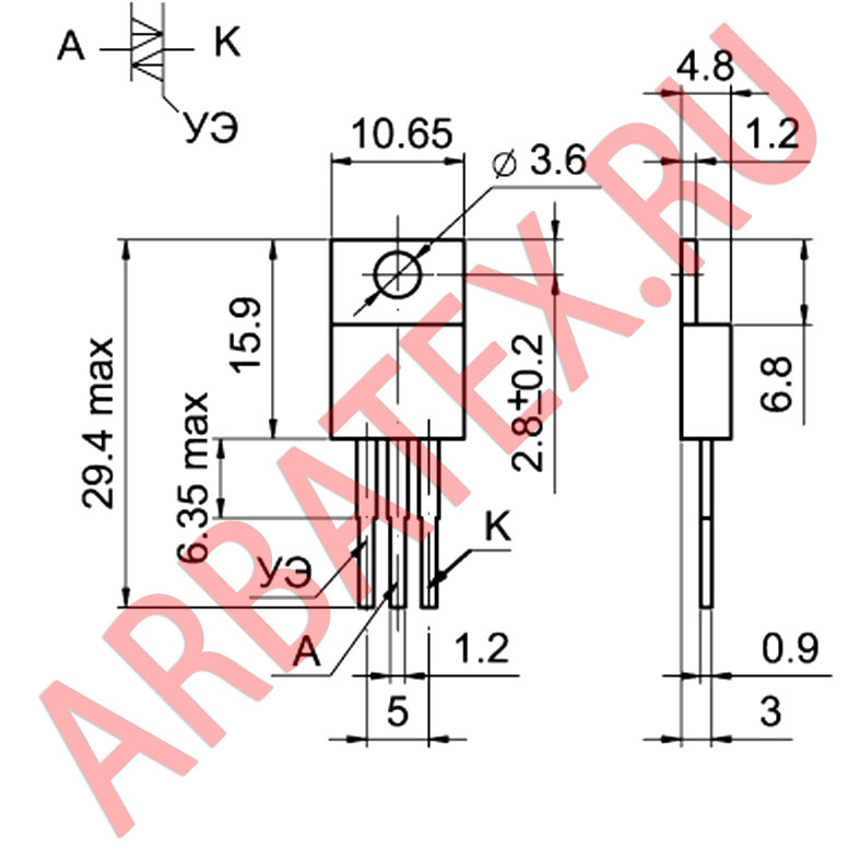 Максимально допустимый средний прямой ток в открытом состоянии - 10 А