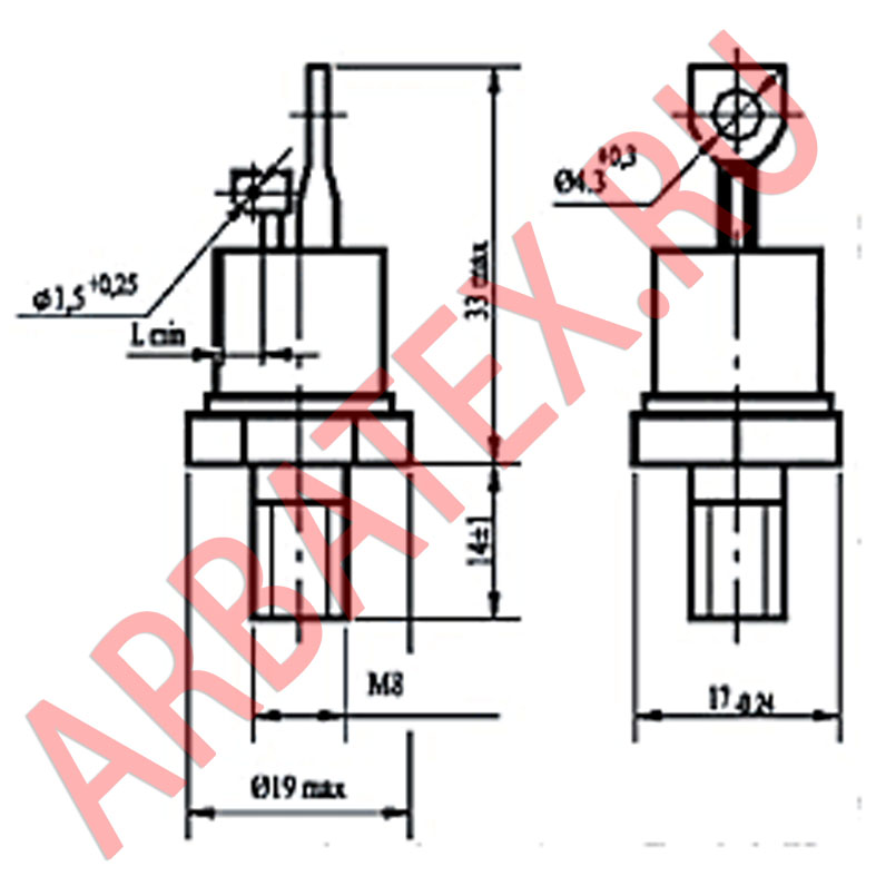 Масса тиристора не более 6 г.