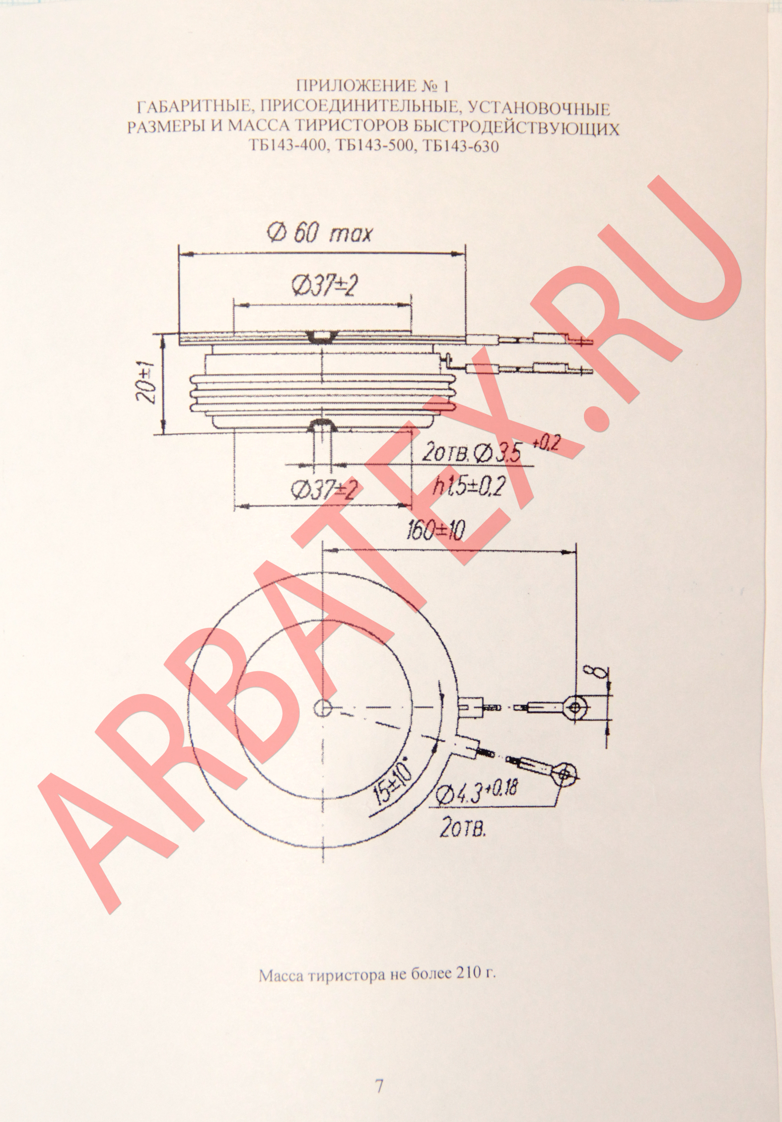 Масса тиристора не более 6 г.