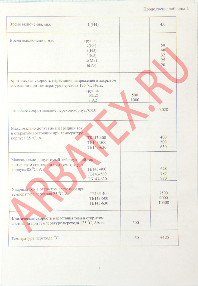 Маркировка тиристоров ТБ143: