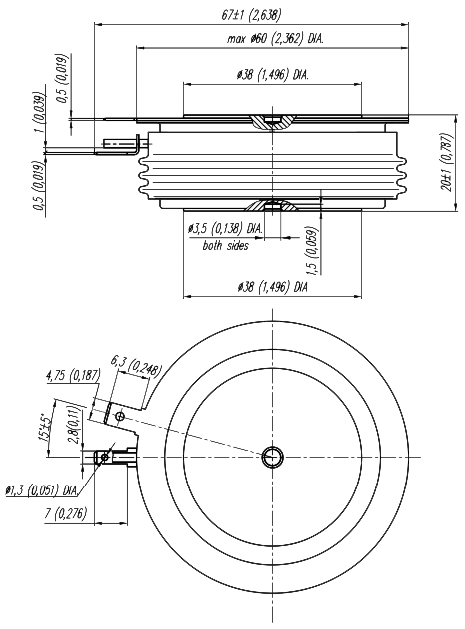 Масса тиристора не более 300 г.