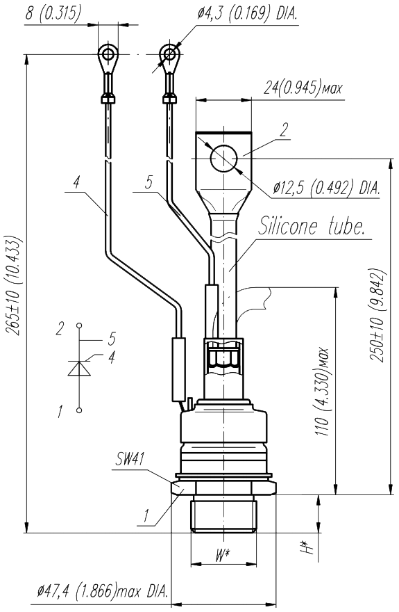 Масса тиристора не более 6 г.