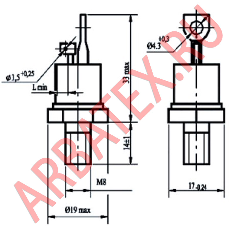 Масса тиристора не более 27 г.