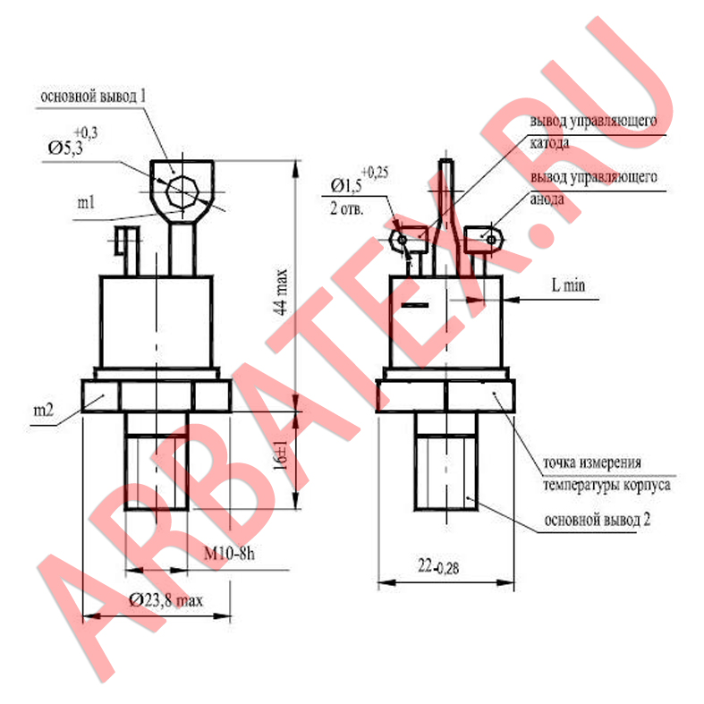 Масса тиристора не более 48 г.