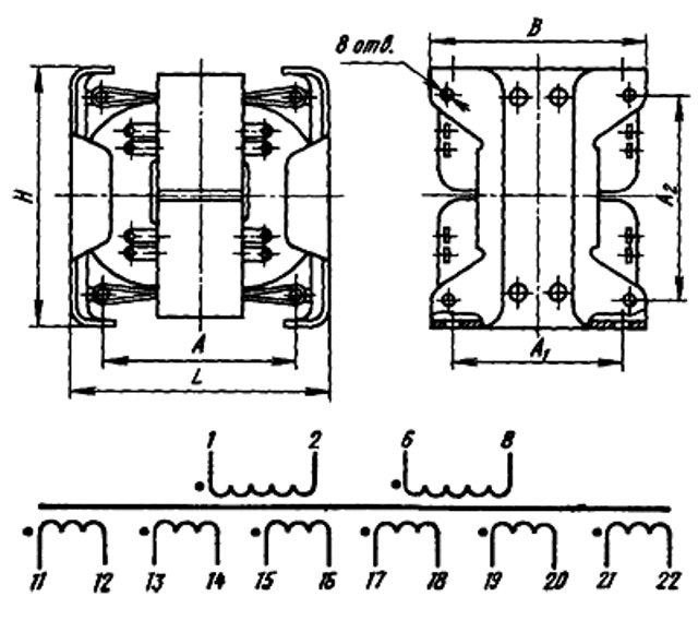 Трансформаторы анодные типа ТА изготавливают на стержневых и броневых магнитопроводах унифицированной конструкции, мощностью от 12 до 510 В*А с выходным напряжением 28...1260 В на токи нагрузки 25...1000 мА.